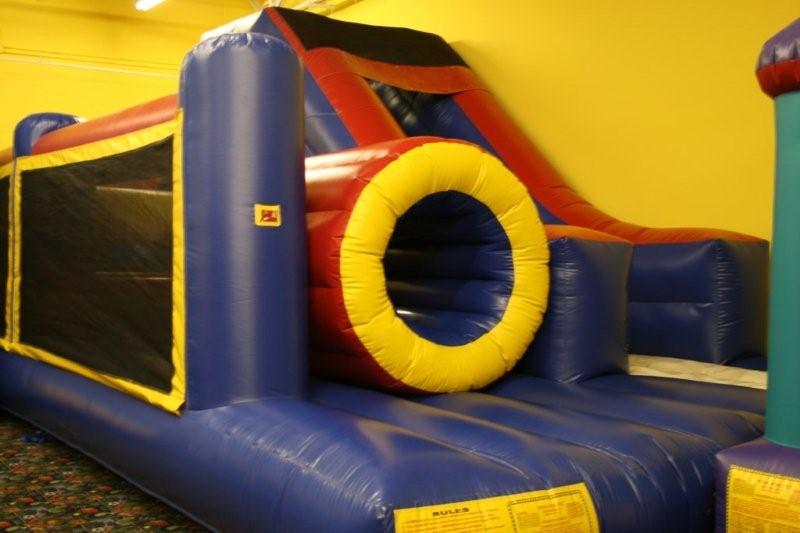 5 IN 1 OBSTACLE , SLIDE COMBO WITH BASKETBALL HOOP